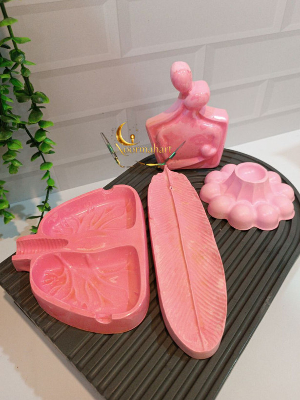 استند دکوری رنگین کمان،دکوری همدم،جاعودی طرح پر،جاشمعی و زیرسیگاری طرح ریه میباشد